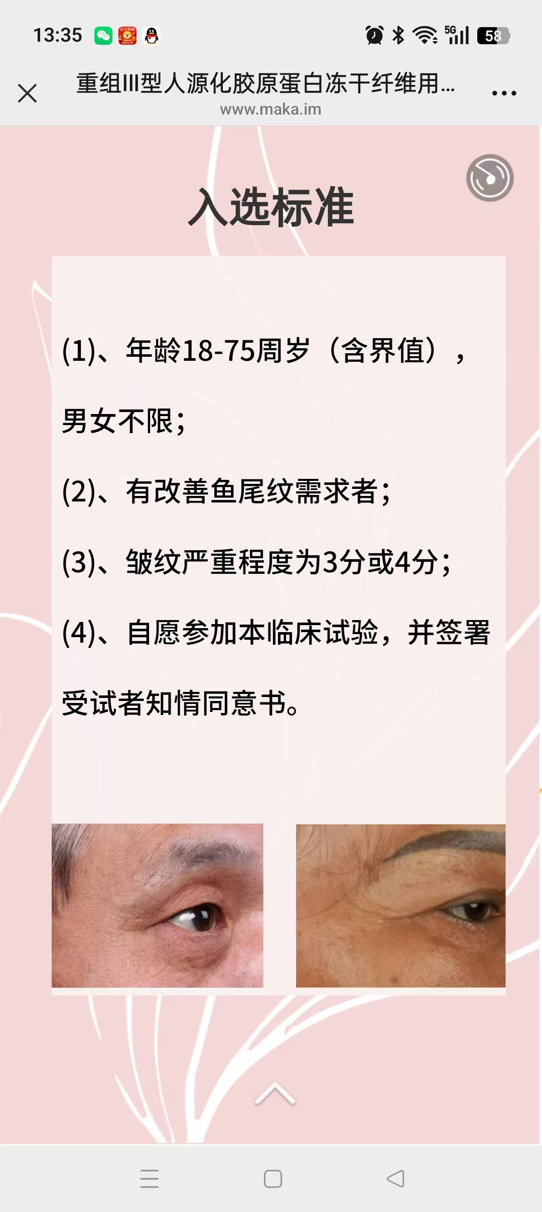 筛选需要垫付100元左右,医院收集发票报销报名请发正面照片,左右45°90°侧面照片